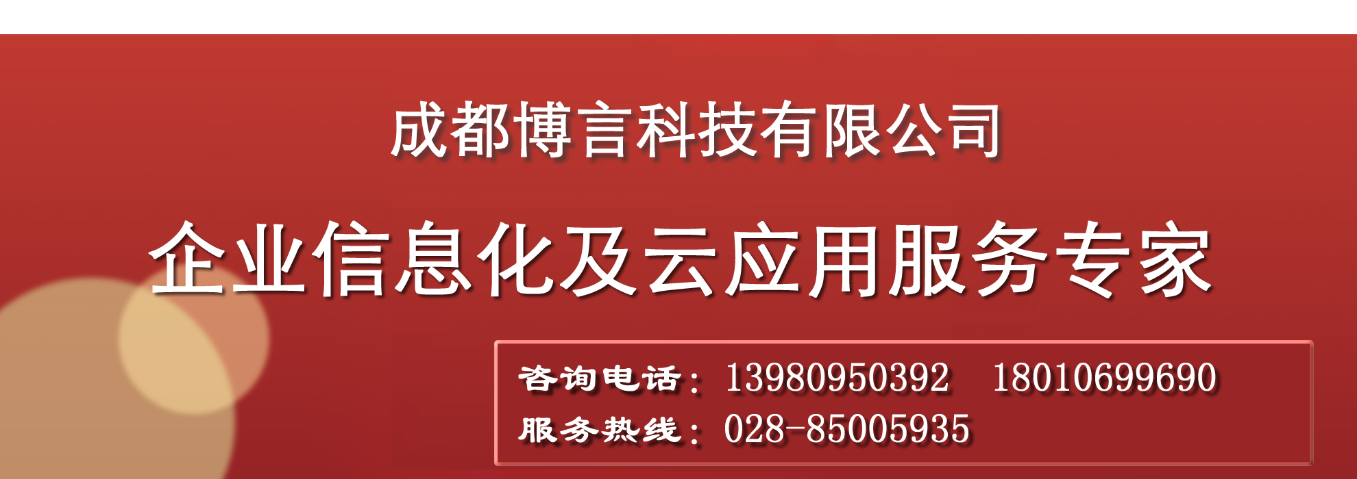 成都博言科技有限公司长期致力于各大中小企业提供全方位的智能化整合解决方案,专业从事财务、业务、生产制造、协同办公管理、客户关系管理等企业管理软件应用的供应商和服务商。自公司2009年成立以来,已为数千家用户提供了包括应用咨询、方案规划、实施培训、集成应用及二次开发等全方位服务。用户涵盖了商贸、咨询、建筑、建设、医药、电力、IT、房地产、通信、物流、交通运输、汽车销售等多个行业。博言从企业的长期管理目标与当前业务基础出发,协助企业制定信息系统阶段目标与发展规划,持续改进企业的信息系统。围绕企业核心业务,为企业简化业务程序,提高客户的营运效益及持续盈利能力。
