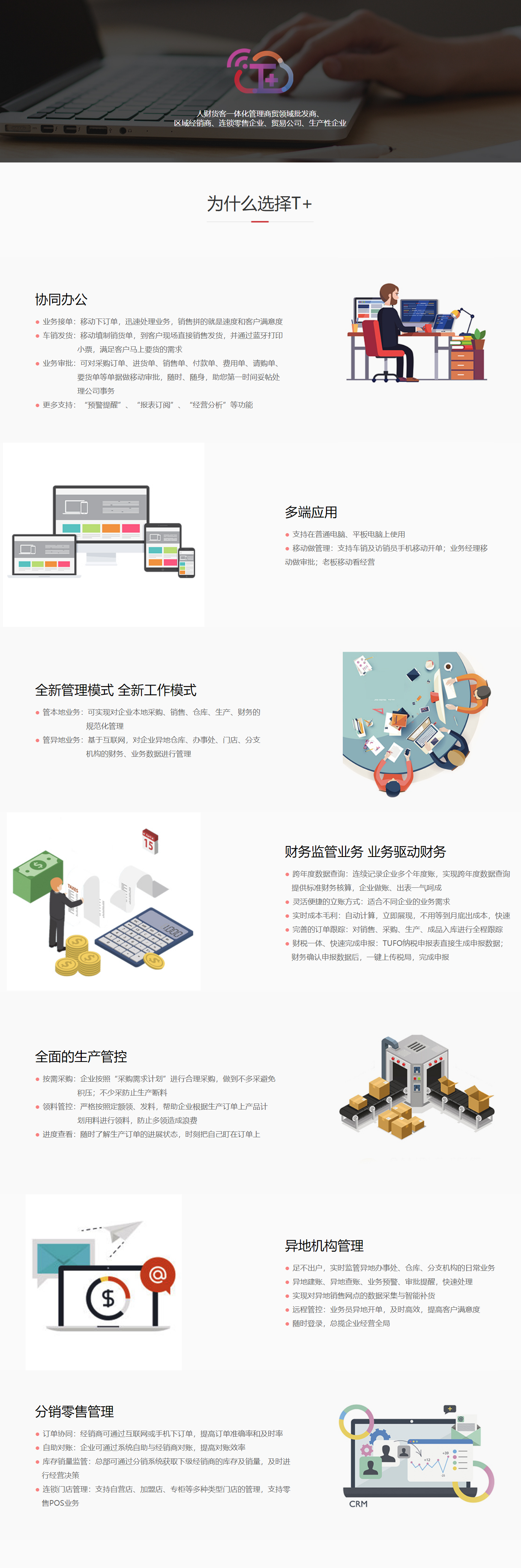 T+有领先的企业互联网应用,移动管理,除满足企业对本地业务管理需求外,还帮助企业对异地仓库、办事处、门店、分支机构进行管控。